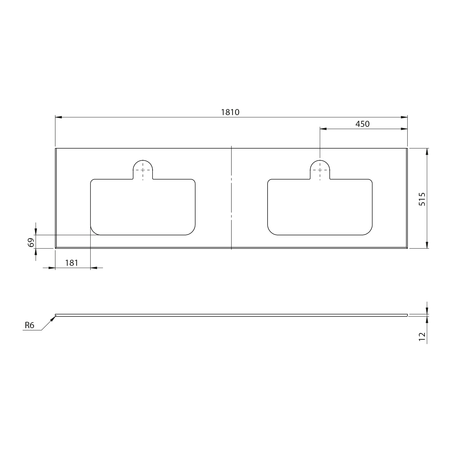 BRAHEA umywalka podwójna 181x51,5cm (90+90cm), Rockstone, biały mat