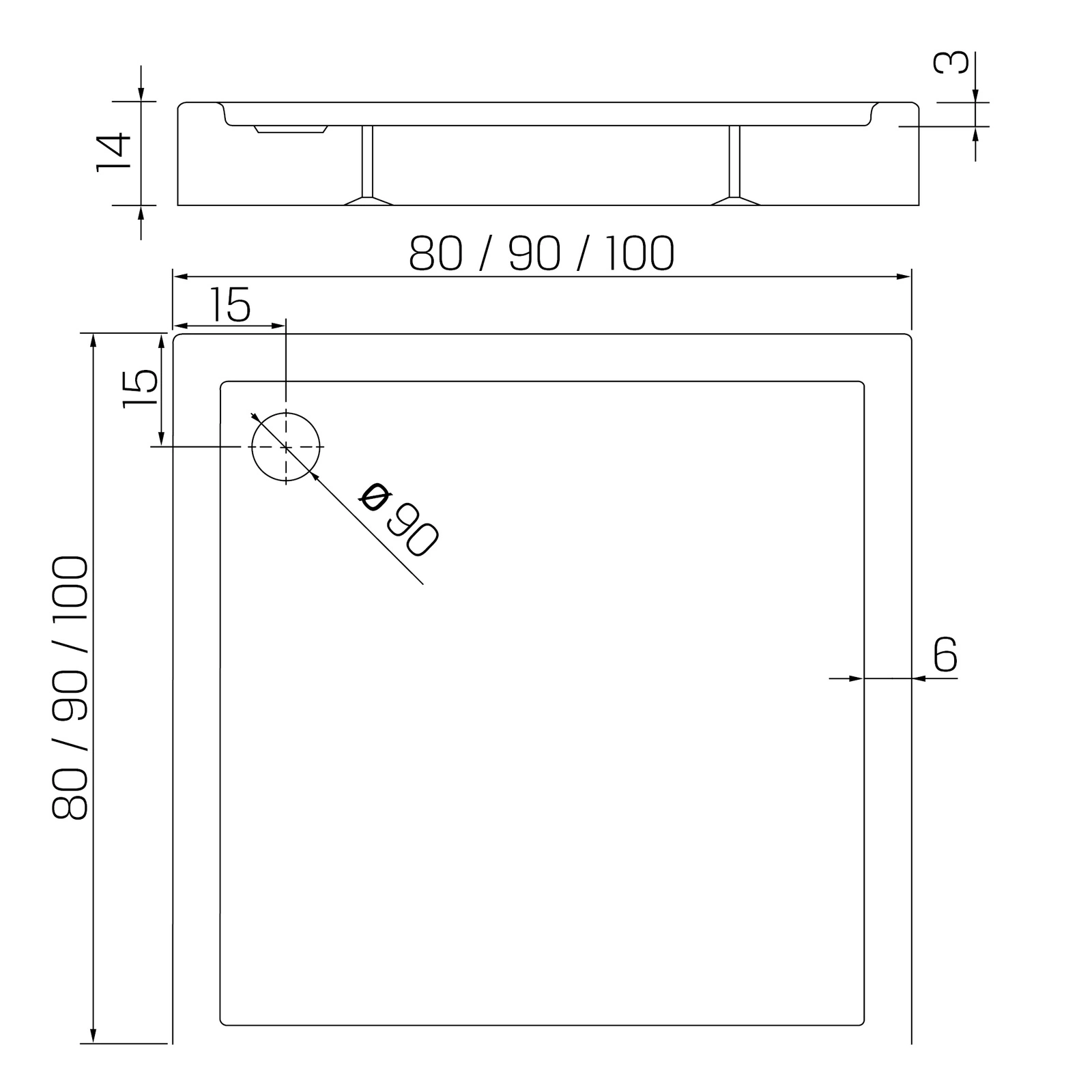 Brodzik prysznicowy COLUMBUS kwadratowy 80x80x14 gł. 3cm - 90 (obudowa zintegrowana, podstawa styropian)