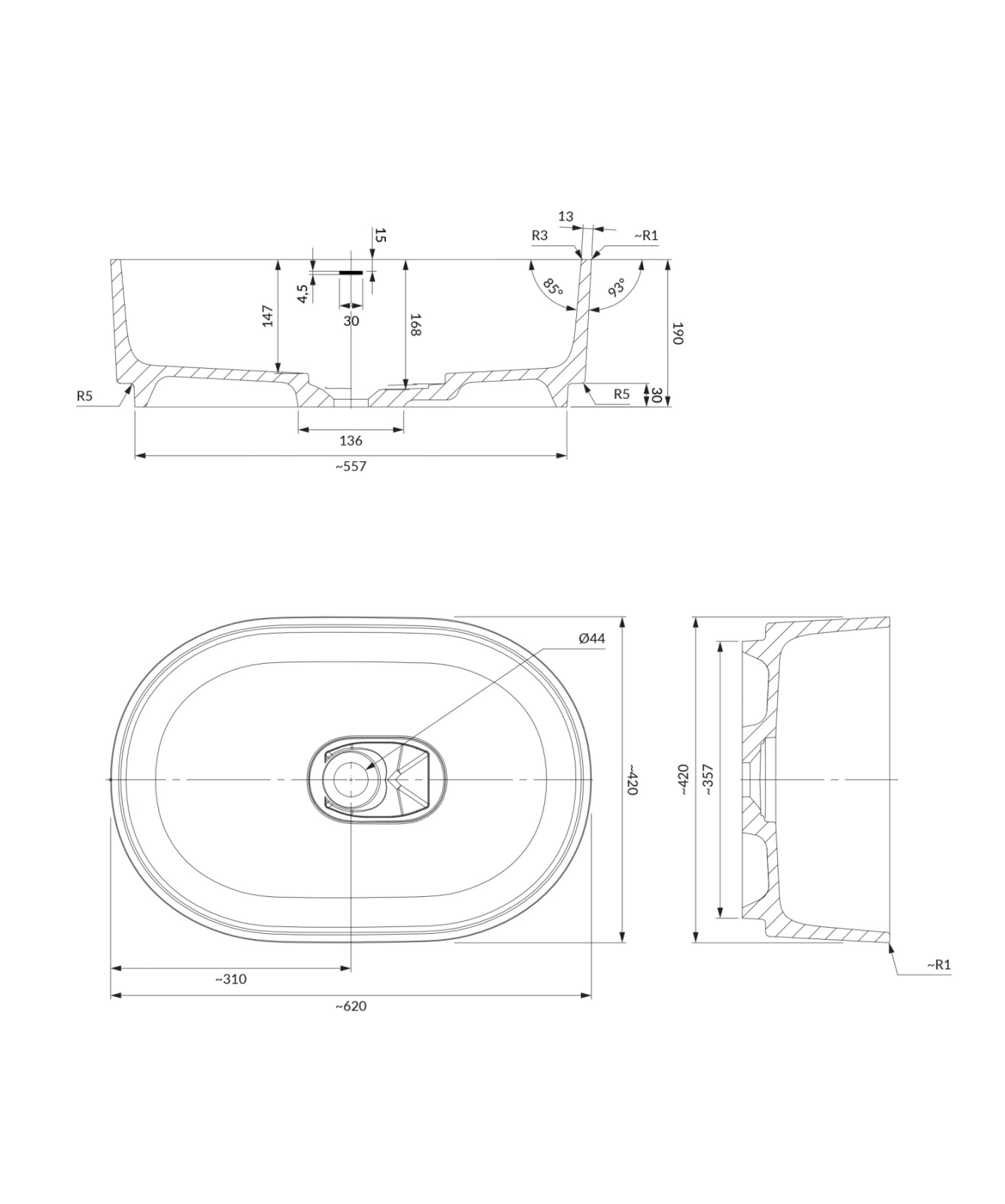 CADENCE M+ | umywalka nablatowa, 62 x 42 cm