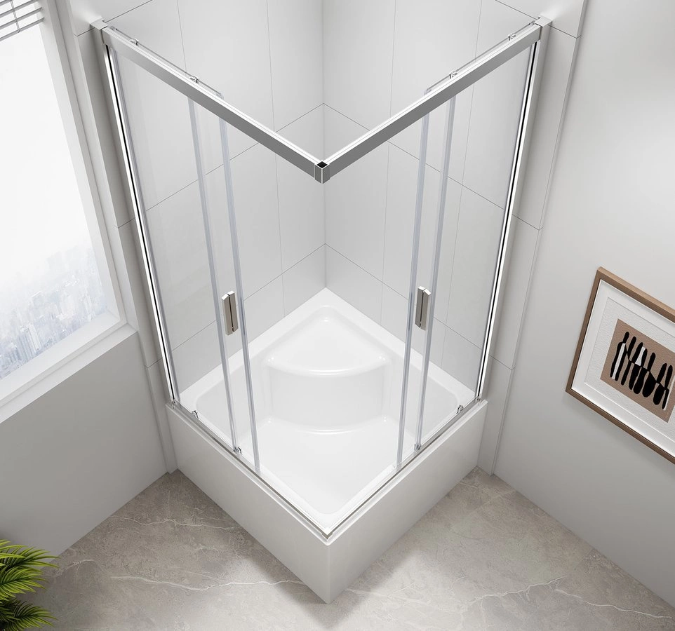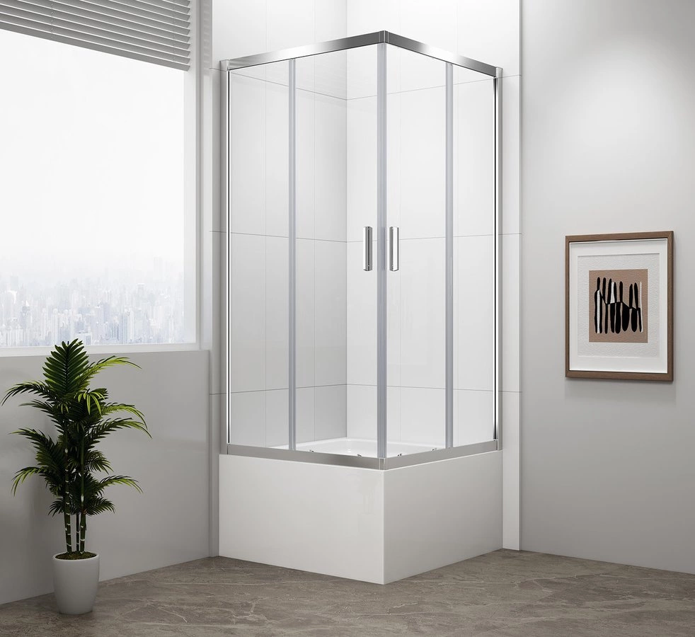 • Kwadratowa kabina prysznicowa z wejściem narożnym