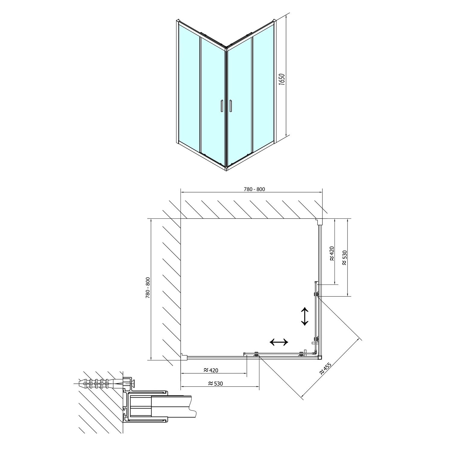 • Kabiny i drzwi prysznicowe, boksy i parawany wannowe | Kabiny prysznicowe do głębokich brodzików | Kabiny prysznicowe do głębokich brodzików kwadratowe, drzwi przesuwne