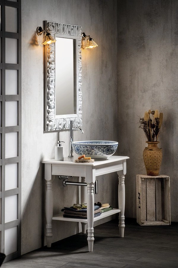 Wykończenie powierzchni STAROBIAŁY = Mebel malowany jest na podstawowy biały matowy kolor, lakier nawierzchniowy włoskiej firmy ASTRA VERNICI.