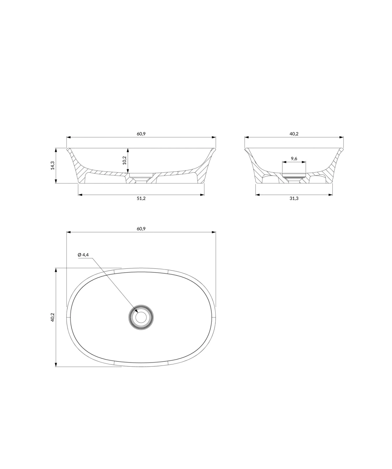 CLASSICA M+ | umywalka nablatowa, 61 x 40 cm