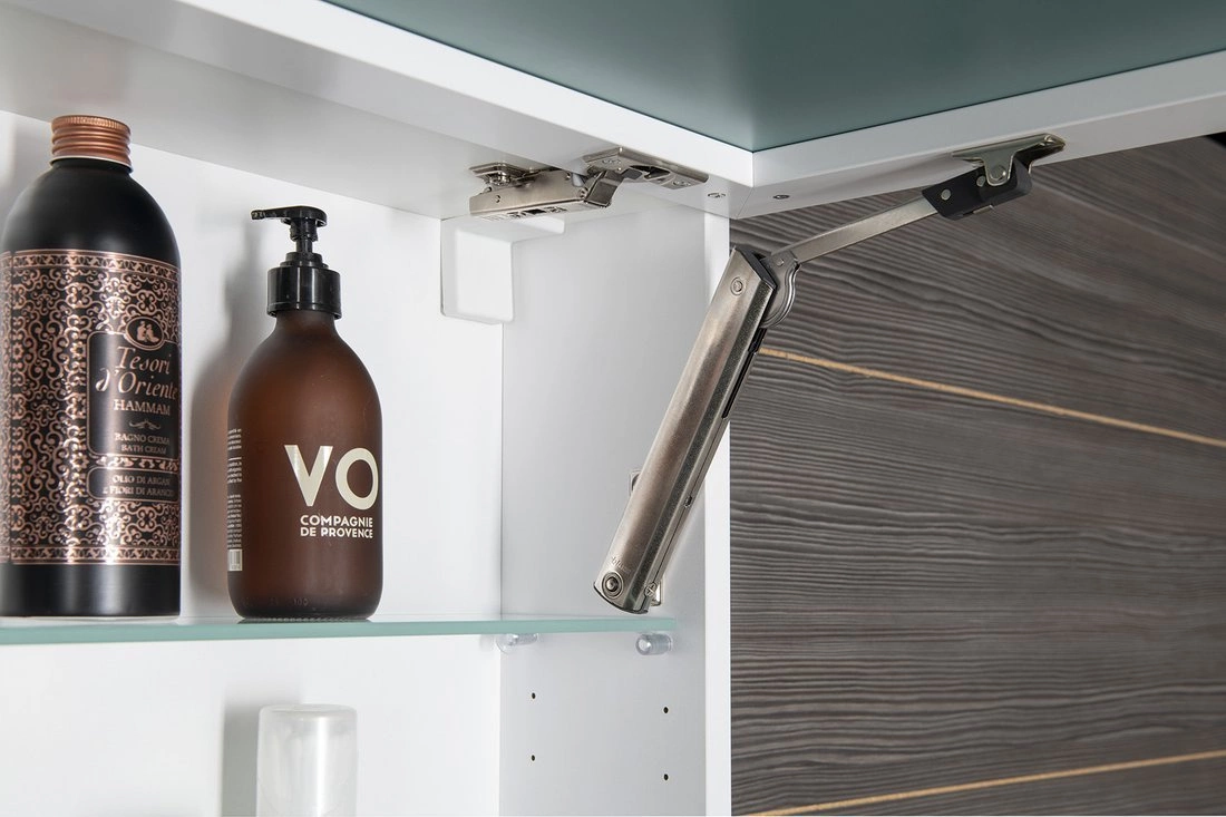 - Przestrzenne szafki z lustrem z podnoszonymi drzwiczkami