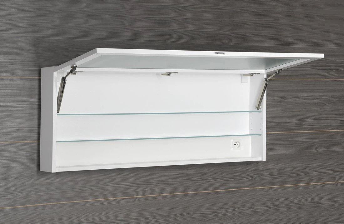 CLOE to praktyczne, przestrzenne szafki z podnoszonymi drzwiczkami lustrzanymi, ze skutecznym oświetleniem LED, które staną się praktycznym i niezbędnym elementem w twojej łazience. Krawędź drzwiczek wykończona jest aluminiowym obrzeżem, drzwiczki podnoszone są za pomocą podnosników BLUM. Oczywistościa są dwie szklane półki oraz zintegrowne gniazdo elektryczne. Duże lustro, które wszystko schowa, stanie sie twoim ulubionym elementem w łazience.