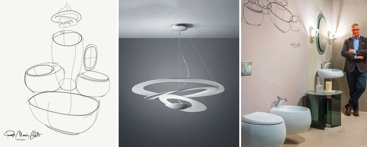 eppe Maurizio Scutellà. Projektant tworząc linie Cloud zainspirował się obłymi kształtami, wirujących, puszystych chmur, przepuszczających promienie słońca.