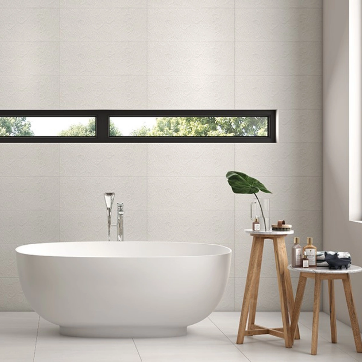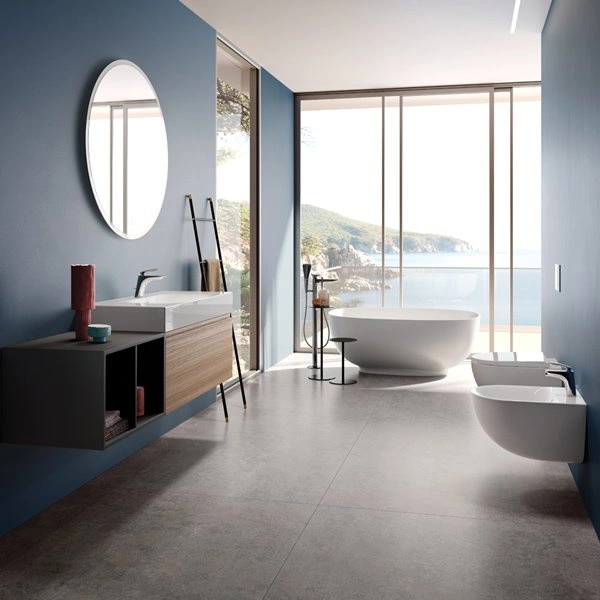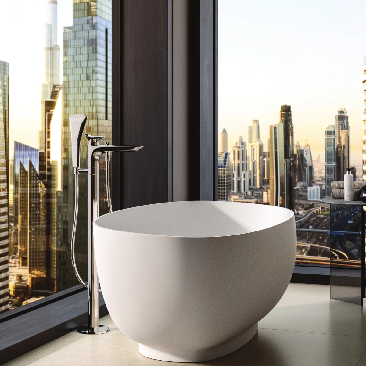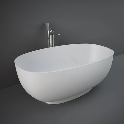 Wanny RAK-Cloud wykonane są z RAKSOLID, trwałego materiału składającego się z mieszanki naturalnych minerałów i żywic. Eleganckie, matowe, białe wykończenie nadaje strefie kąpielowej wyrazistego charakteru, a także jest przyjemne w dotyku i zapewnia większe bezpieczeństwo antypoślizgowe.
