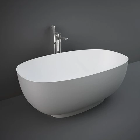 Wanny RAK-Cloud wykonane są z RAKSOLID, trwałego materiału składającego się z mieszanki naturalnych minerałów i żywic. Eleganckie, matowe, białe wykończenie nadaje strefie kąpielowej wyrazistego charakteru, a także jest przyjemne w dotyku i zapewnia większe bezpieczeństwo antypoślizgowe.