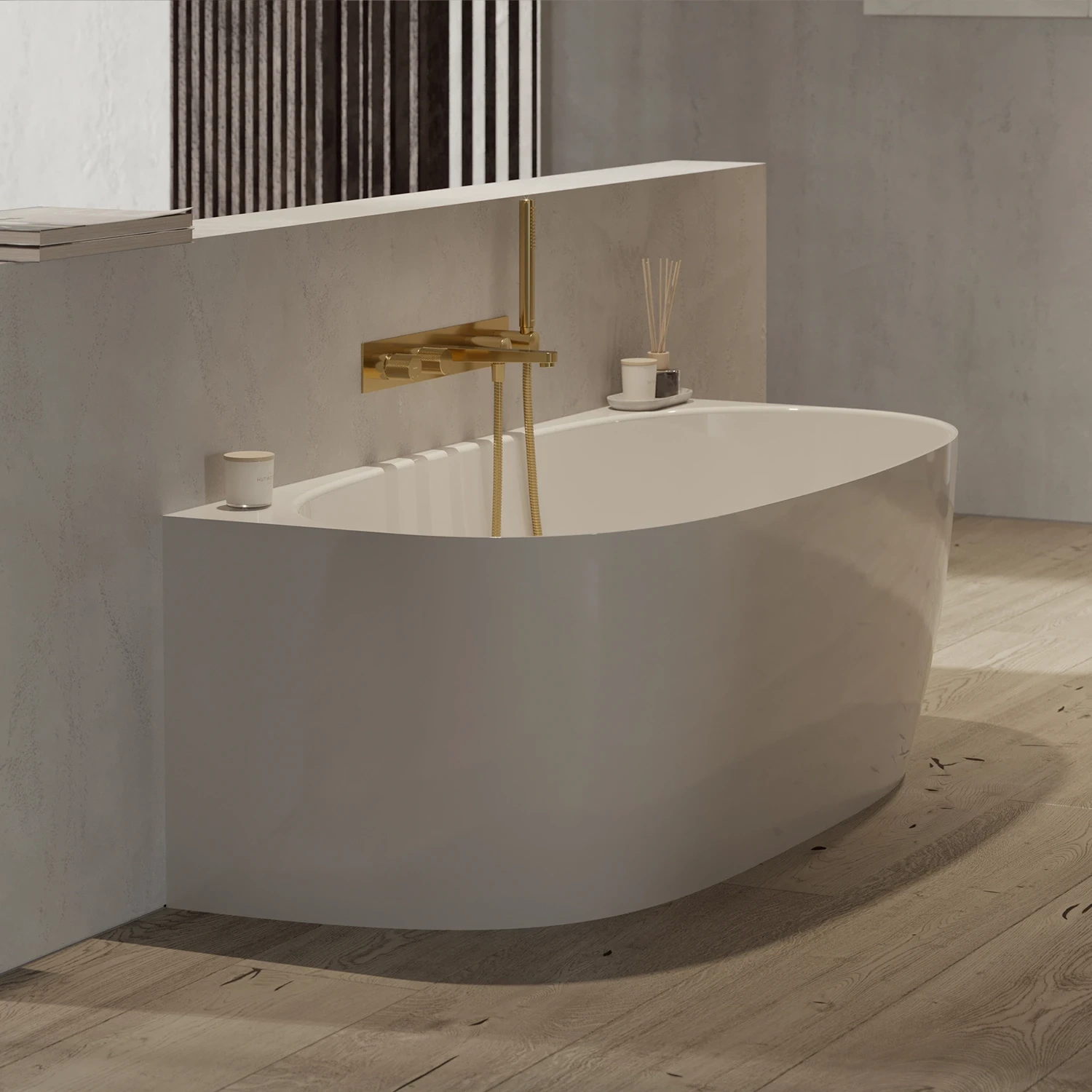 Bateria wannowa podtynkowa z kolekcji OMNIRES CONTOUR, ze zintegrowaną rączką prysznicową, intryguje ekstrawagancką formą i ozdobnymi detalami. Oszczędny, architektoniczny wzór z diamentowym frezowaniem zachwyca wyrafinowanym zestawieniem faktur i perfekcyjnym wykonaniem. Symetryczna forma baterii perfekcyjne współgra z wanną, tworząc harmonijną kompozycję. Montaż podtynkowy gwarantuje oszczędność miejsca, a także łatwość czyszczenia.