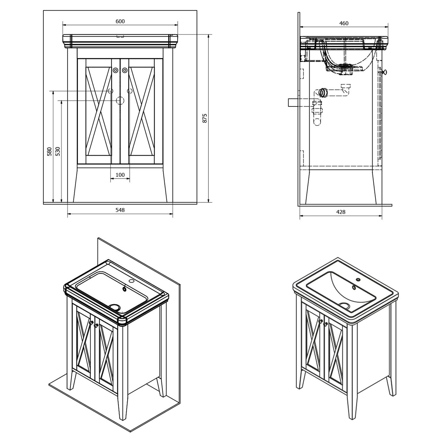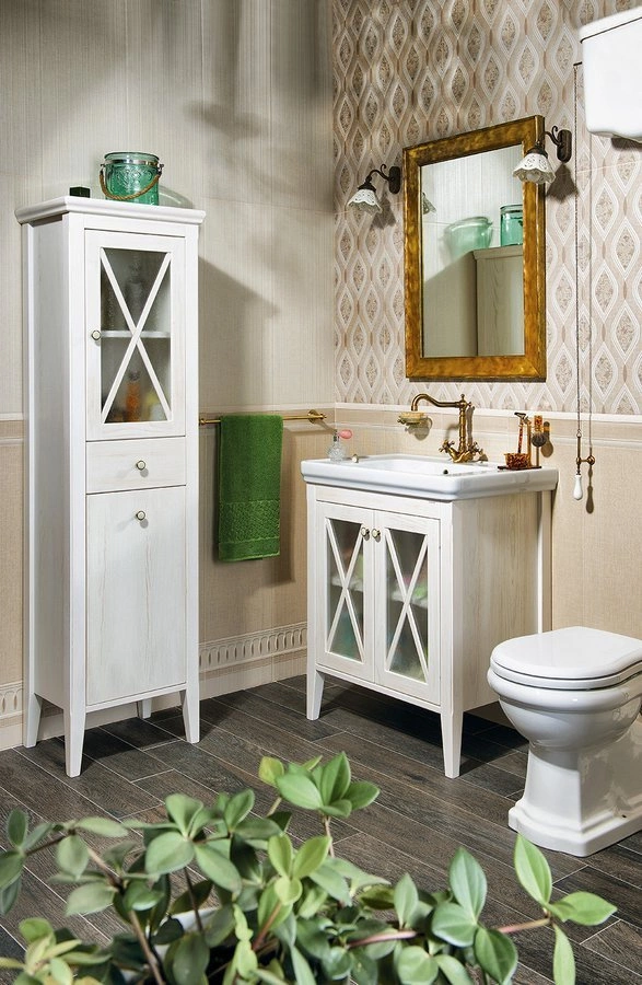 Seria CROSS to meble klasycznych kształtów z wymownym akcentem na frontach i bokach szafek, które sprawdzają się nie tylko w rustykalnych łazienkach ale wszędzie tam, gdzie prym grają naturalne materiały, twałość i precyzja wykonania. Lite drewno bukowe w odcieniu mahoniu oraz drewno świerkowe w wykończeniu starobiałym razem z przeszklonymi drzwiczkami dodaje łaizence luksusu. Szafki pod umywalkę są w kilku szerokościach, można dopełnić wysokim słupkiem dostępnym w dwu wymiarach i stylowym lustrem.