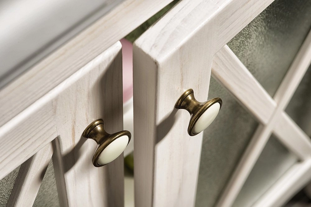 Szafki w odcieniu mahoniu impregnowane są 2 warstwami oleju: barwionego dla ujednolicenia koloru drewna i bezbarwnego dla większej trwałości. W wariancie starej bieli szafki są malowane na biało, następnie szlifowane w celu uzyskania efektu retro, a na koniec przemalowywane bezbarwnym lakierem dla uzyskania większej trwałości.