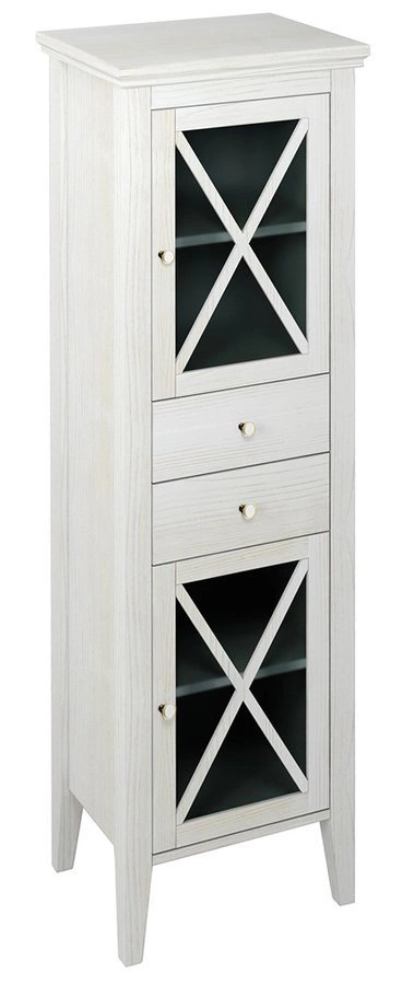 Seria CROSS to meble klasycznych kształtów z wymownym akcentem na frontach i bokach szafek, które sprawdzają się nie tylko w rustykalnych łazienkach ale wszędzie tam, gdzie prym grają naturalne materiały, twałość i precyzja wykonania. Lite drewno bukowe w odcieniu mahoniu oraz drewno świerkowe w wykończeniu starobiałym razem z przeszklonymi drzwiczkami dodaje łaizence luksusu. Szafki pod umywalkę są w kilku szerokościach, można dopełnić wysokim słupkiem dostępnym w dwu wymiarach i stylowym lustrem.