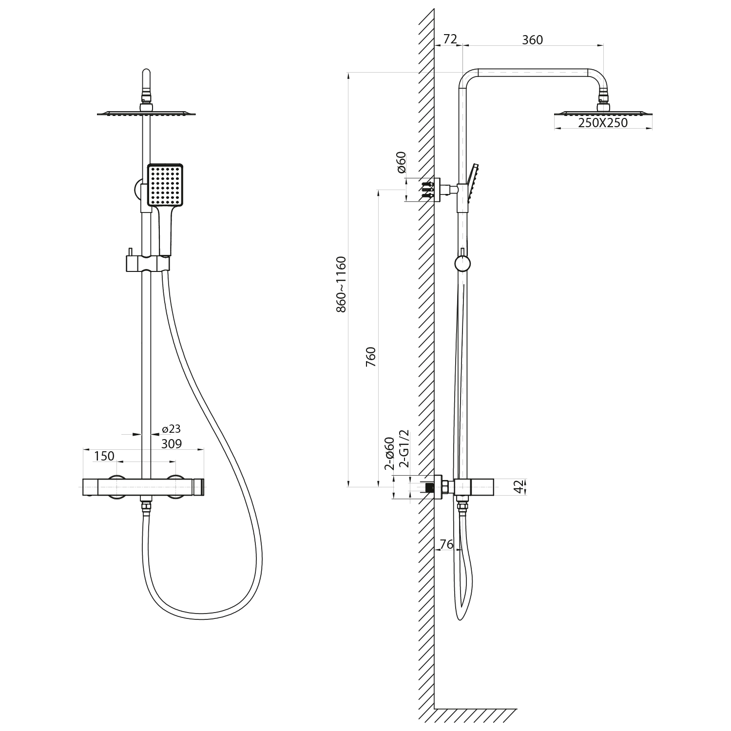 | Instalacja | Ścienna 150 mm |