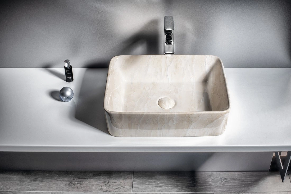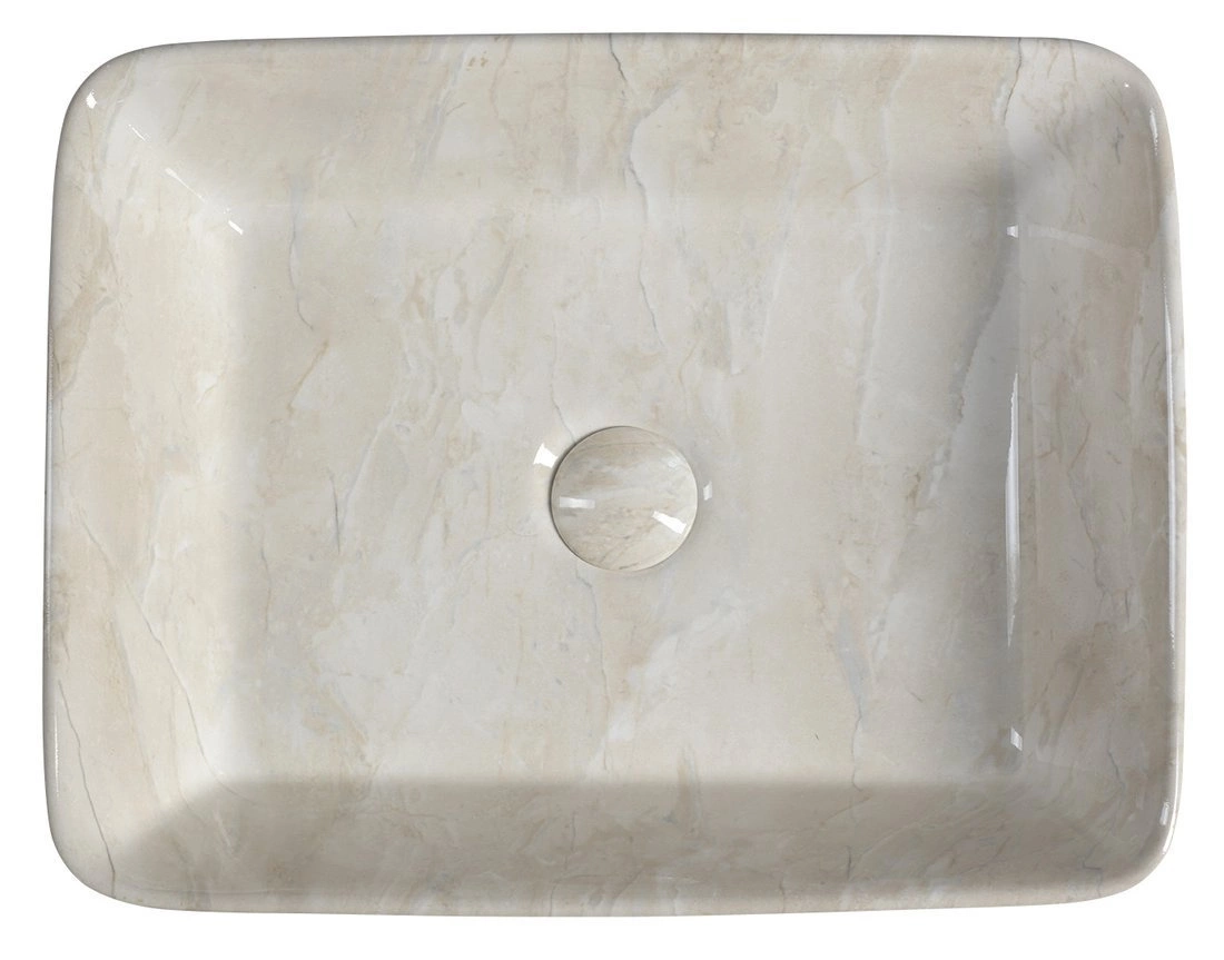 Ceramiczne umywalki DALMA zachwycają efektem marmuru. Obciski imitujące naturalny kamień są wypalone w szkliwie, co gwarantuje trwałość powierzchni. Możesz wybierać z 3 różnych odcieni i 3 różnych kształtów. Wszystkie umywalki DALMA są przeznaczone do postawienia na blacie, do każdej można dokupić efektowy zamykalny korek w kolorze umywalki.