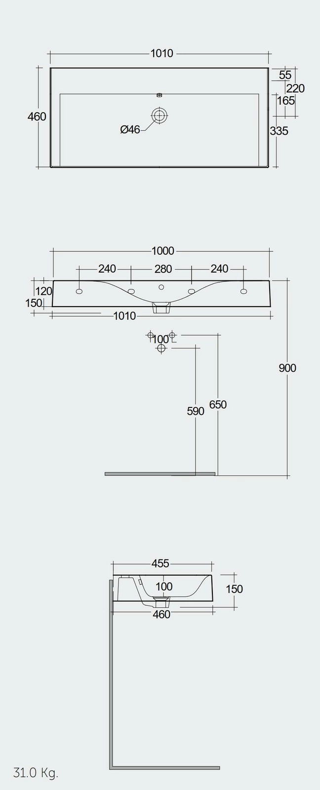 - Wymiary: 101 x 46 x 12 cm