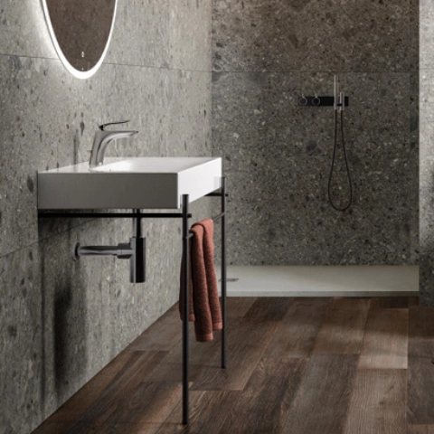 RAK - DES to kolekcja, na którą składają się umywalki owalne nablatowe, umywalki wolnostojące o wyjątkowych opływowych kształtach oraz prostokątne umywalki nablatowe o minimalistycznych, subtelnych liniach, które mogą być zestawione z szafkami JOY i JOY UNO czy mogą być łączone z metalowymi stelażami, miski WC i bidety o opływowych kształtach.