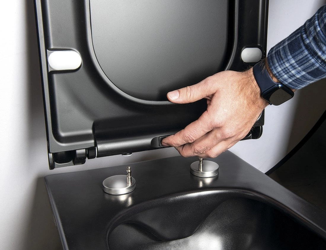 Łatwe zdejmowanie i zakładanie siedziska: naciskając boczne zawiasy lub przycisk (w niektórych modelach wystarczy ustawić siedzisko w pozycji prostopadłej), można zdjąć siedzisko z zawiasów (według rodzaju rys. 1a, 1b, 1c), umyć a następnie ponownie założyć siedzisko, po prostu zapiąć je na miejsce (rys. 2).