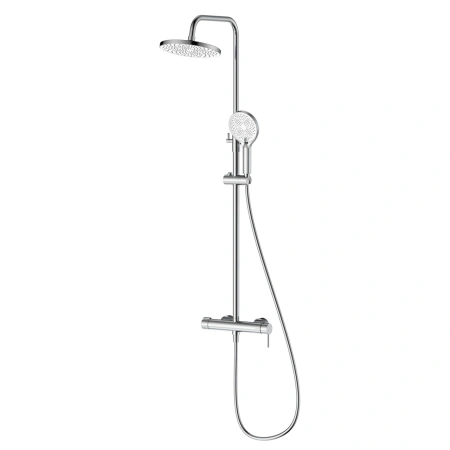 Smukły, cylindryczny zestaw natryskowy w błyszczącym wykończeniu Chrom połysk harmonijnie łączy elegancję i funkcjonalność. Styl: klasyczny i minimalistyczny z akcentem premium; forma proporcjonalna, a powierzchnia lśniąca podkreśla czystość linii. Solidny mosiężny korpus baterii i stalowy drążek tworzą trwałą, odporną na korozję konstrukcję, gotową do intensywnego, wieloletniego użytkowania.