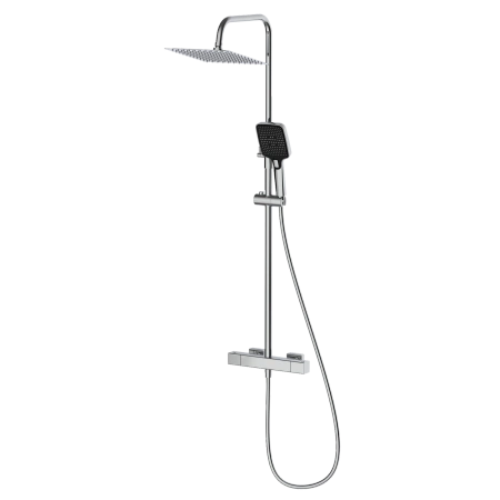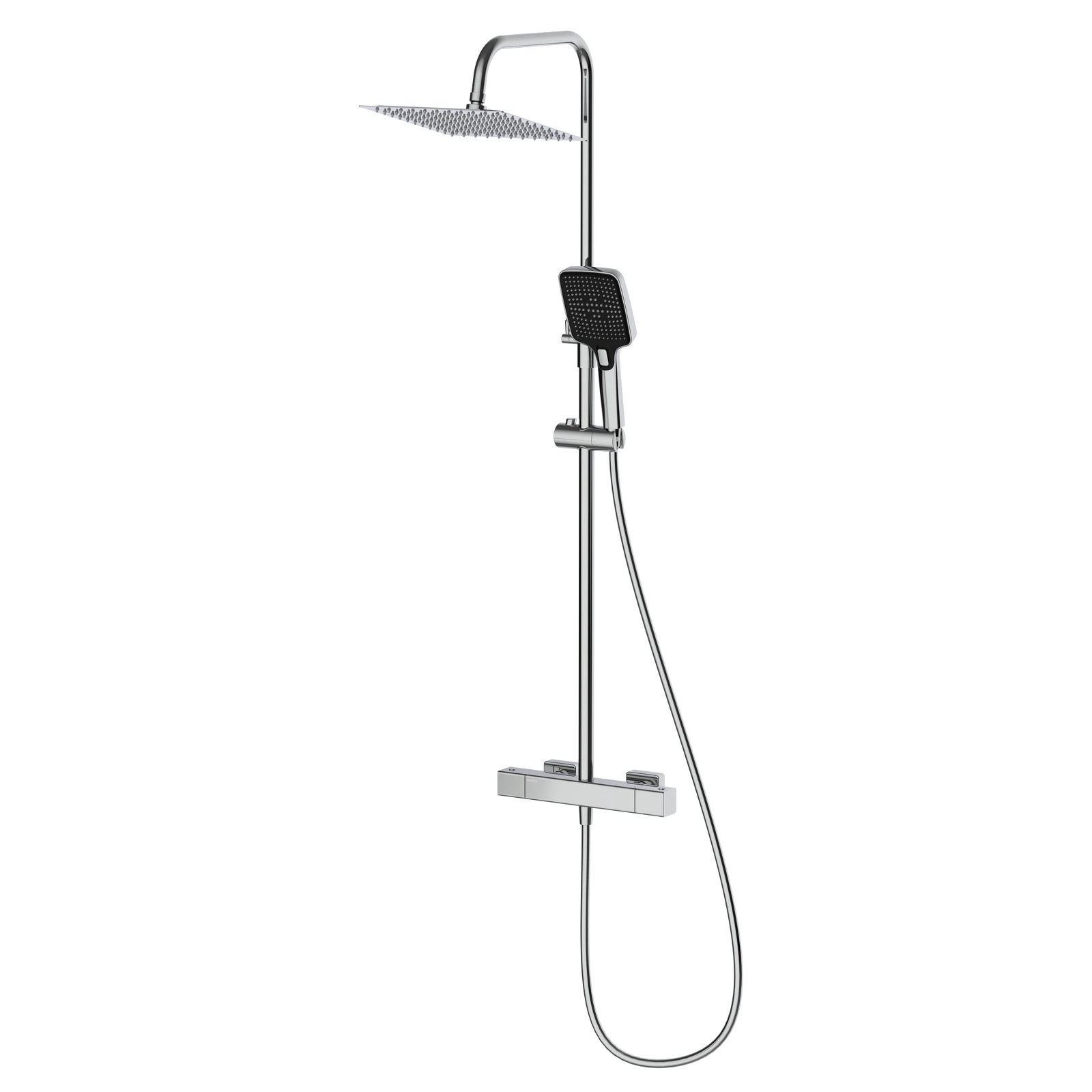 - Avapax THERMO – Deszczownica z baterią prysznicową termostatyczną dwufunkcyjną, symbol produktu ADTH6211T2, błyszczący chrom. Stała temperatura z blokadą 38°C, strumień z głowicy 250 mm, 2 tryby słuchawki, regulowany drążek i wąż 1500 mm.