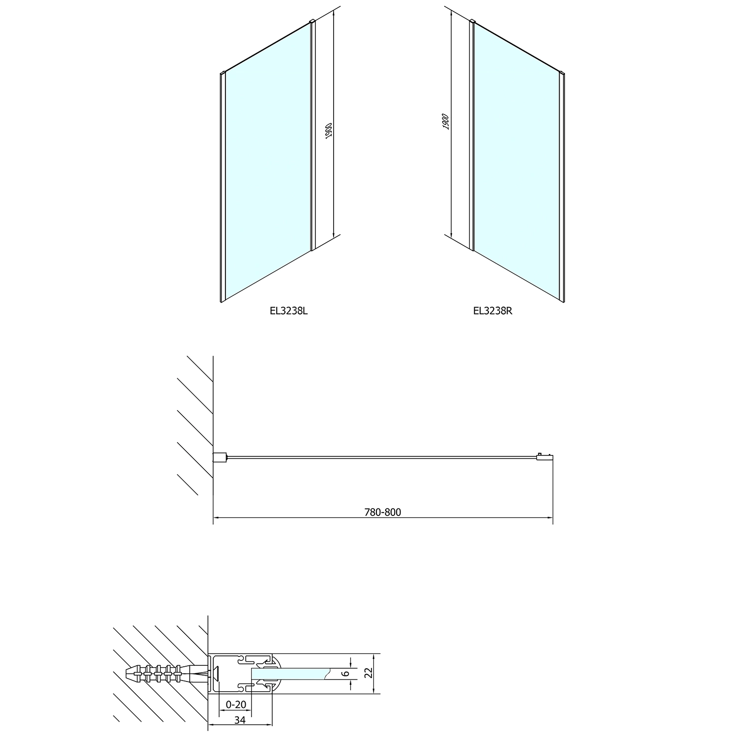 | Kształt | Ścianka stała do drzwi prysznicowych |