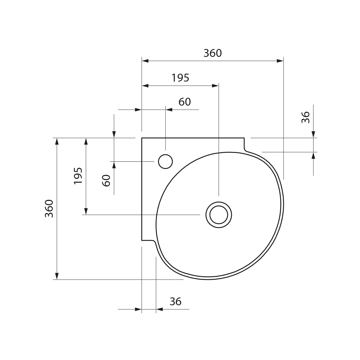 ECKERT umywalka ceramiczna narożna 36x36cm, biały