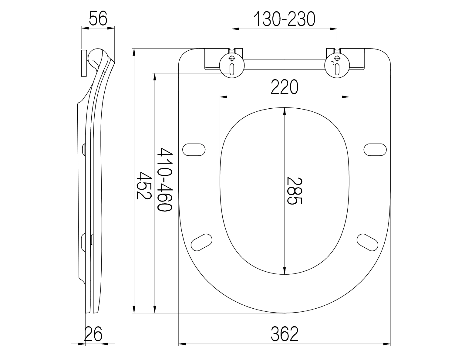 • Regulowane uchwyty ze stali nierdzewnej umożliwiają dostosowanie deski do wymiarów miski WC