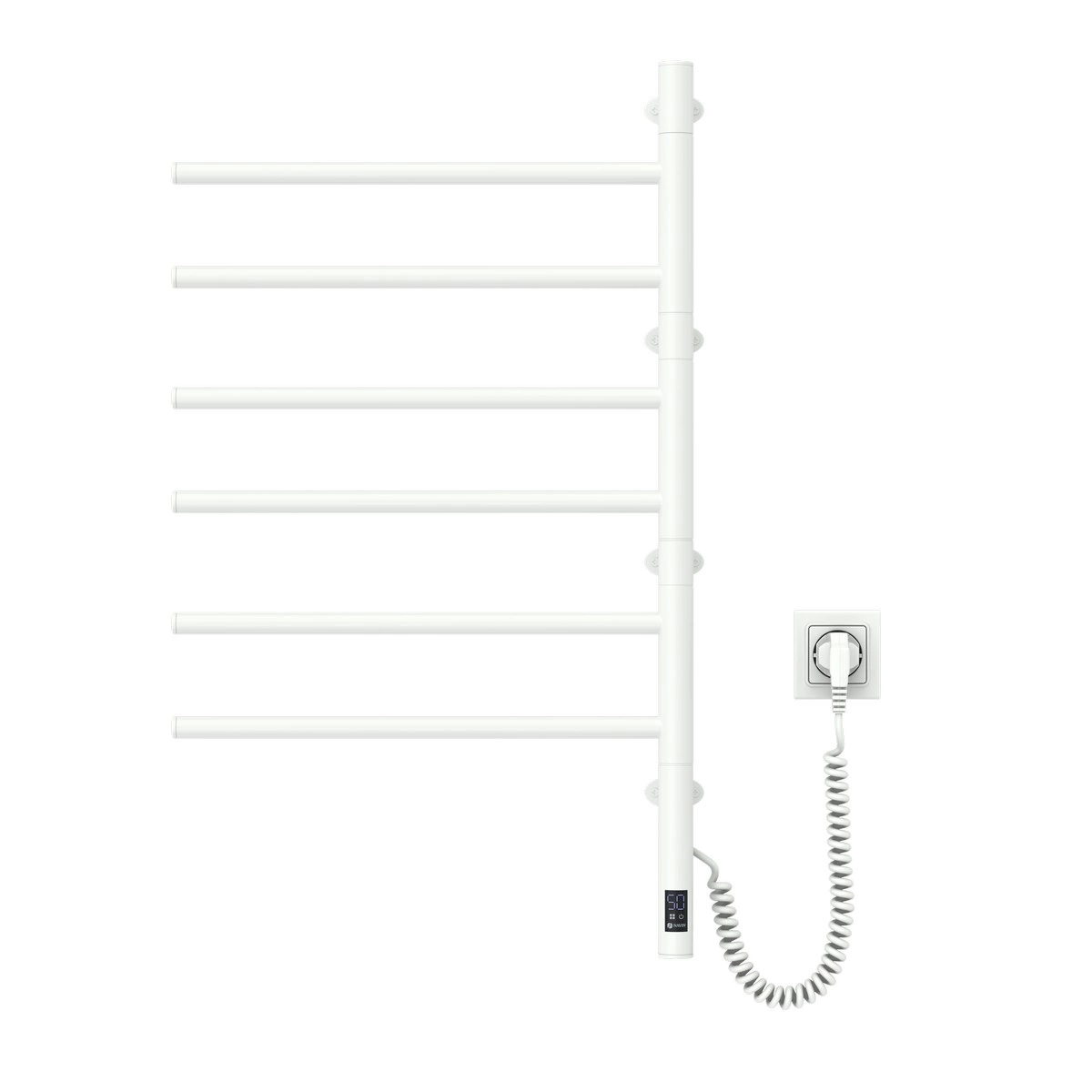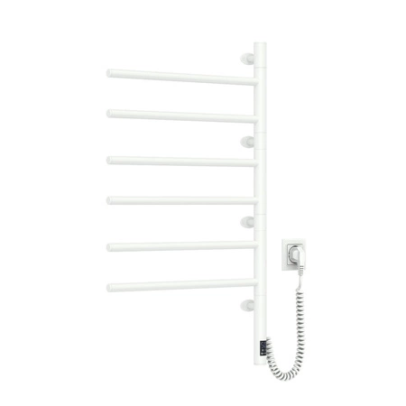 Grzejnik łazienkowy elektryczny Navin​ Arabesque elegancki i minimalistyczny. Projekt tych modeli tworzy przyjemne uczucie lekkości i harmonii. Jednocześnie Arabesque jest uniwersalnym i bardzo praktycznym grzejnikiem łazienkowym, ponieważ jego poziome zworki obracają się o 180 stopni. Takie konstruktywne podejście pozwala w razie potrzeby na ułożenie dowolnej konfiguracji, a także na uzyskanie grzejnika zarówno w lewo, jak iw prawo. Grzejnik łazienkowy elektryczny Navin Arabesque 480х800 Sensor (biały) wykonany jest ze stali węglowej, która wyróżnia się wysoką jakością i wytrzymałością. Model posiada malowanie proszkowe. Grubość ścianek wieszaków na ręczniki wynosi 1,5 mm, a wieszaka 2 mm. Moc cieplna modelu: 196 W; Temperatura pracy (*) : +60°C +/- 5°C; Stopień ochrony: IP44; * - w temperaturze pokojowej 20°C i napięciu nominalnym 230V Z łatwością sterujesz mocą grzejnika i oszczędzasz dodatkową energię, ponieważ model ten wyposażony jest w wygodny i łatwy w konfiguracji czujnikowy regulator temperatury Sensor z wbudowaną funkcją timera.