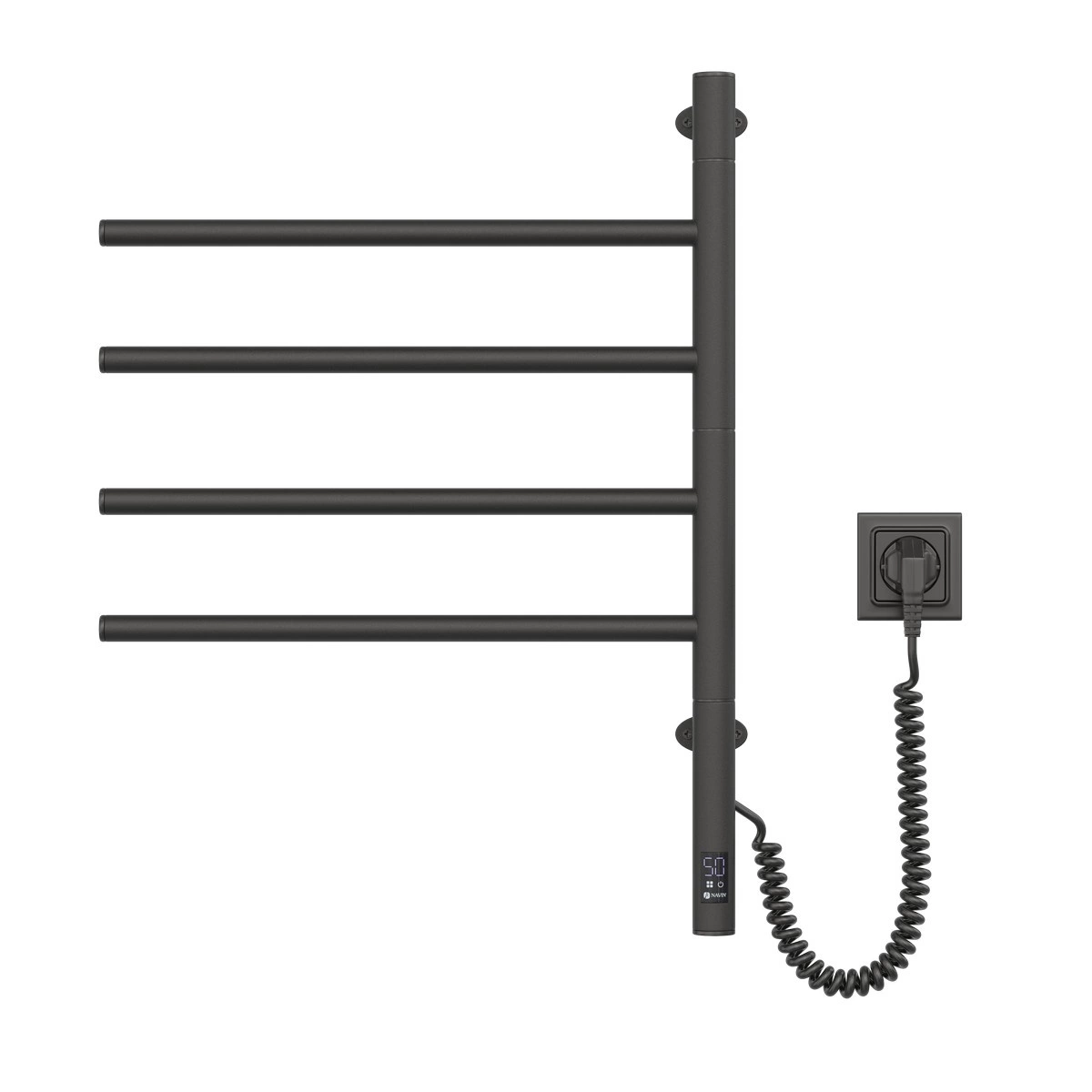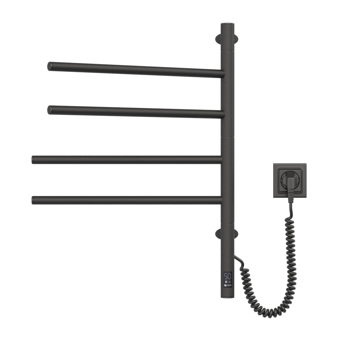 Elektryczny grzejnik łazienkowy NAVIN Arabesque elegancki i minimalistyczny. Projekt tych modeli tworzy przyjemne uczucie lekkości i harmonii. Jednocześnie Arabesque jest uniwersalnym i bardzo praktycznym grzejnikiem łazienkowym, ponieważ jego poziome zworki obracają się o 180 stopni. Takie konstruktywne podejście pozwala w razie potrzeby na ułożenie dowolnej konfiguracji, a także na uzyskanie grzejnika zarówno w lewo, jak iw prawo. Grzejnik łazienkowy elektryczny Navin Arabesque 480х600 Sensor (czarna mora), wykonany jest ze stali węglowej, która wyróżnia się wysoką jakością i wytrzymałością. Model posiada malowanie proszkowe. Grubość ścianek wieszaków na ręczniki wynosi 1,5 mm, a wieszaka 2 mm. Moc cieplna modelu: 150 W; Temperatura pracy (*) : 50° +/- 5°C; Stopień ochrony: IP44; * - w temperaturze pokojowej 20°C i napięciu nominalnym 230V Z łatwością sterujesz mocą grzejnika i oszczędzasz dodatkową energię, ponieważ model ten wyposażony jest w wygodny i łatwy w konfiguracji czujnikowy regulator temperatury Sensor z wbudowaną funkcją timera.