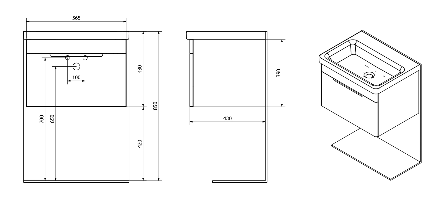ELLA szafka umywalkowa 56,5x39x43cm, szuflada, biała