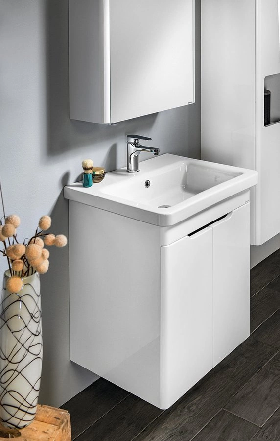 Meble ELLA doskonale współgrają z ceramicznymi umywalkami CITY. Zaokrąglone narożniki i współmierna linia otworów do wygodnego otwierania tworzą spójną całość, która idealnie pasuje do każdego projektu, w którym dominują harmonijne zaokrąglone linie. System bezuchwytowy umożliwia wygodne otwieranie szuflad, pojazdy BLUM zapewnią cichy domyk.
