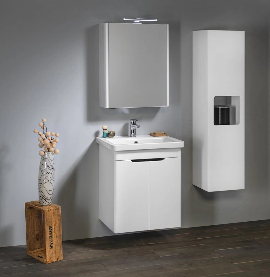 Do wyboru są szafki pod umywalkę z szufladami lub drzwiczkami i wysokie słupki w dwu wymiarach.