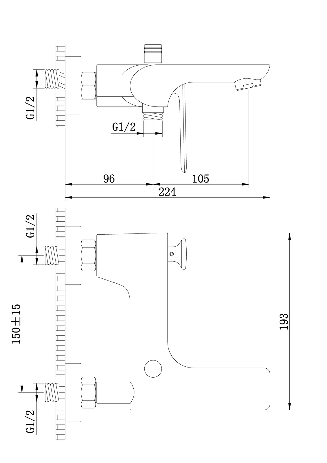- Natynkowa bateria wannowo-prysznicowa