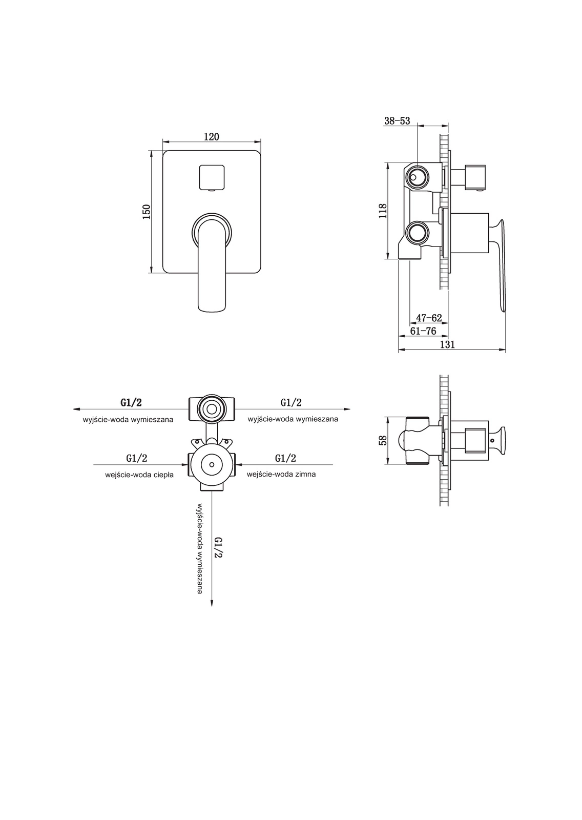 EXPERIENCE Gray Podtynkowa bateria wannowo-prysznicowa z trzema wyjściami
