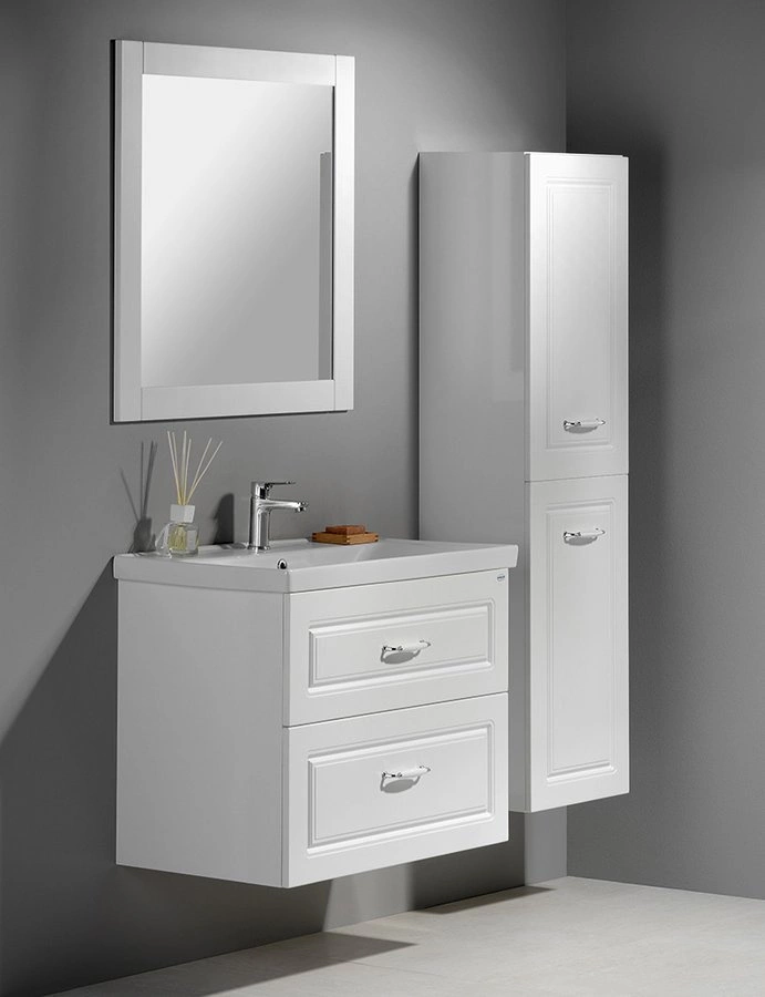 FAVOLO to seria mebli łazienkowych z frezowaniem na frontach, które wspaniale pasują do łazienek urządzonych w klasycznym stylu, lub w stylu retro. Zestaw Favolo dopełniony o dopasowaną umywalkę i lustro dobrze wpisuje się w atmosferę wiejskiego domu, tak samo jak apartamentu z początku XX wieku.
