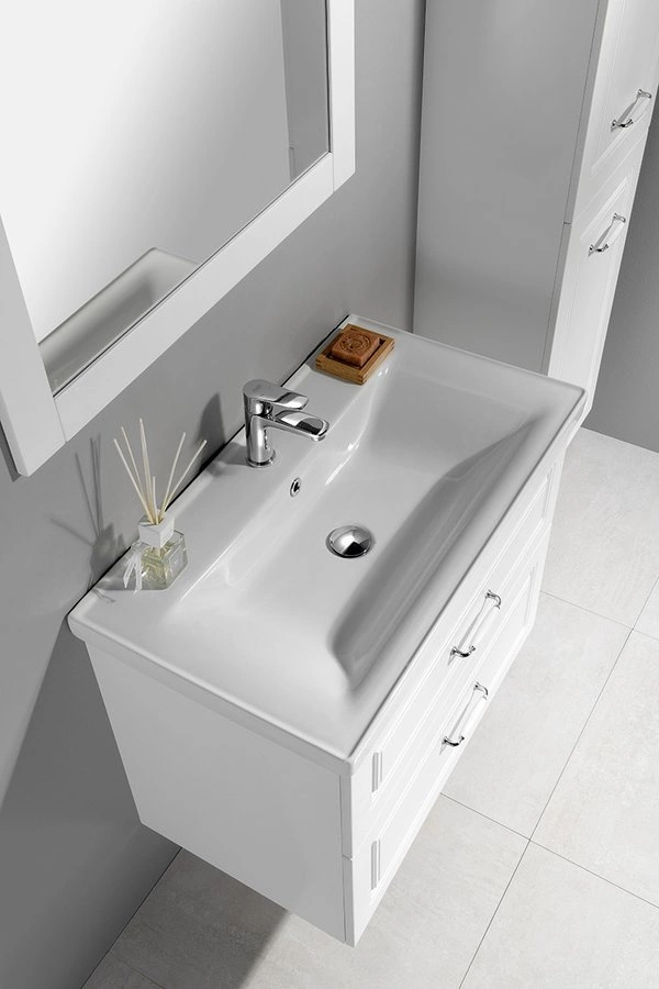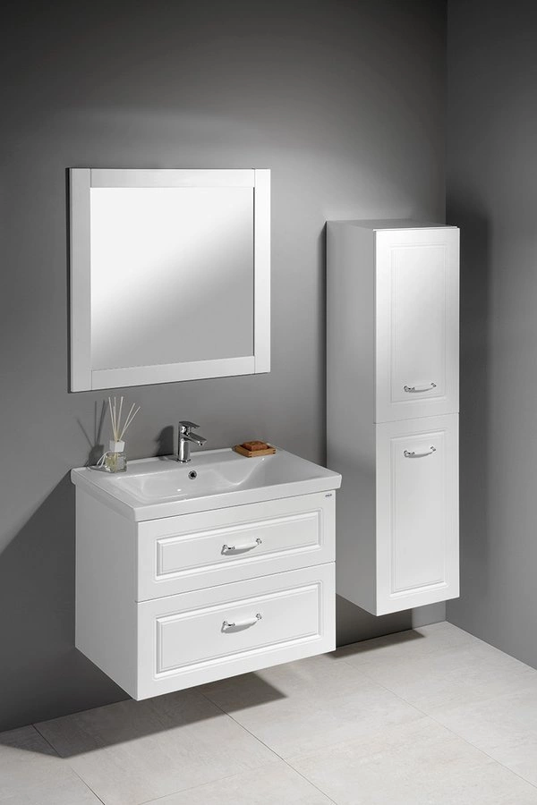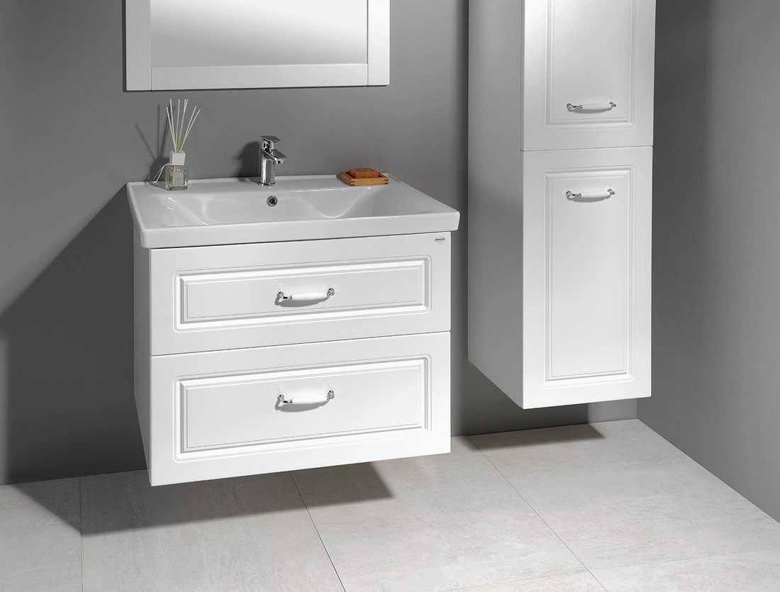 FAVOLO to seria mebli łazienkowych z frezowaniem na frontach, które wspaniale pasują do łazienek urządzonych w klasycznym stylu, lub w stylu retro. Zestaw Favolo dopełniony o dopasowaną umywalkę i lustro dobrze wpisuje się w atmosferę wiejskiego domu, tak samo jak apartamentu z początku XX wieku.