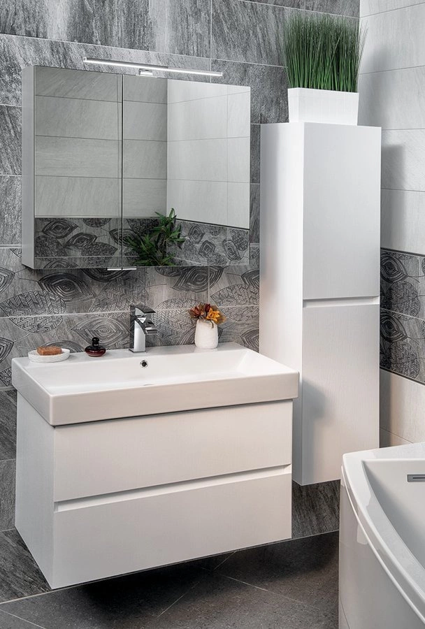 Dyskretne ostre linie, precyzja wykonania, to charakterystyczne cechy mebli FILENA, które się sprawdzą nie tylko w minimalistycznych łazienkach. Oferujemy fonir naturalnego koloru drewna dębowego z wyraźnie podkreślonymi słojami, w białym macie lub w czarnym macie z ryflowanymi frontami.