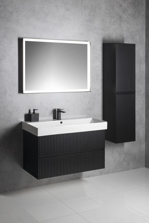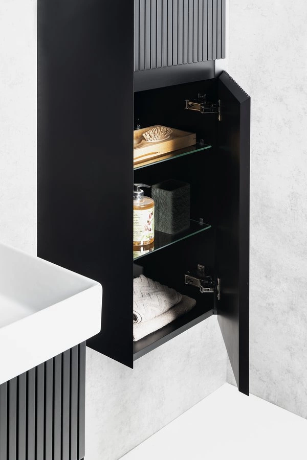 Dyskretne ostre linie, precyzja wykonania, to charakterystyczne cechy mebli FILENA, które się sprawdzą nie tylko w minimalistycznych łazienkach. Oferujemy fonir naturalnego koloru drewna dębowego z wyraźnie podkreślonymi słojami, w białym macie lub w czarnym macie z ryflowanymi frontami.