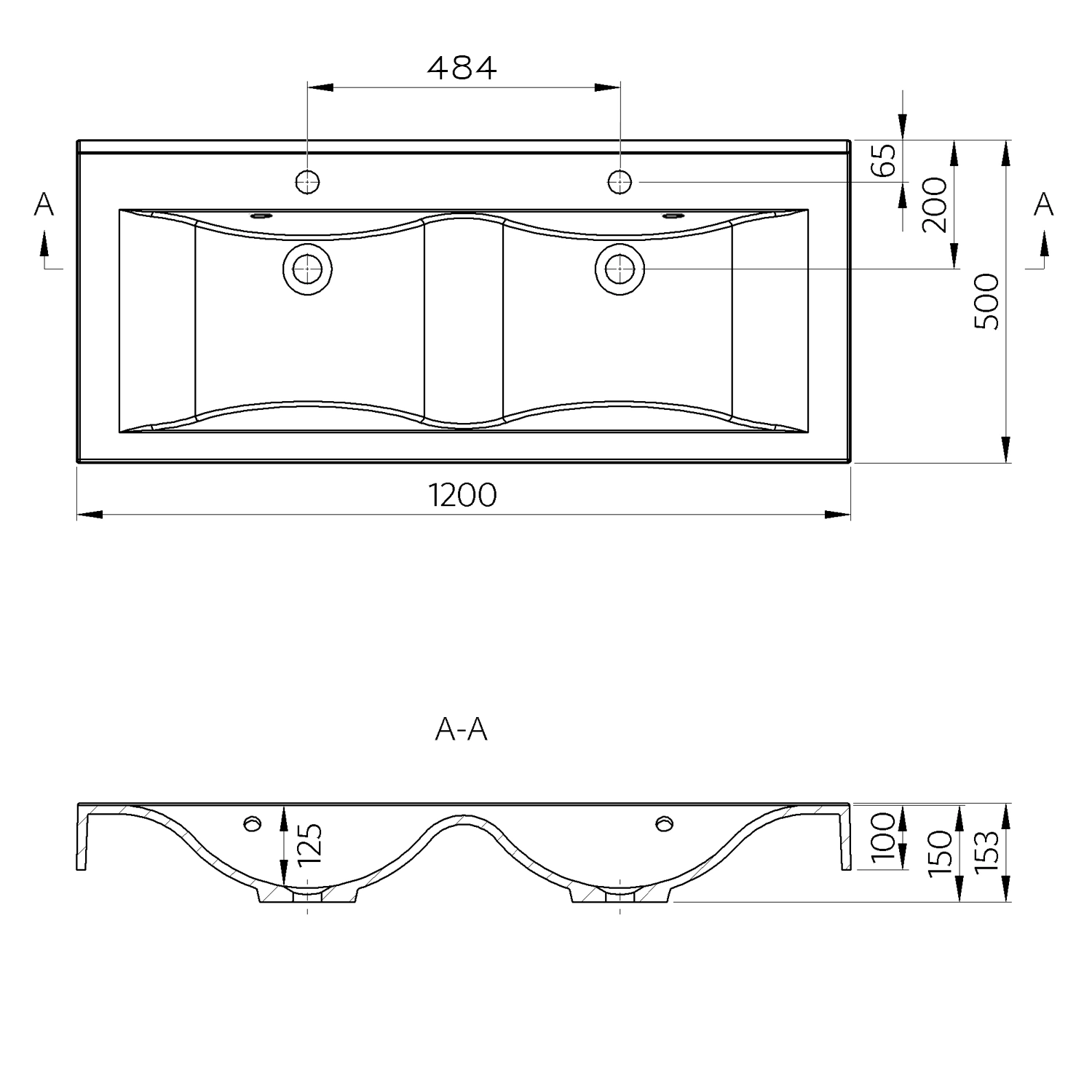 FLAVIA umywalka kompozytowa podwójna 120x50cm, biała