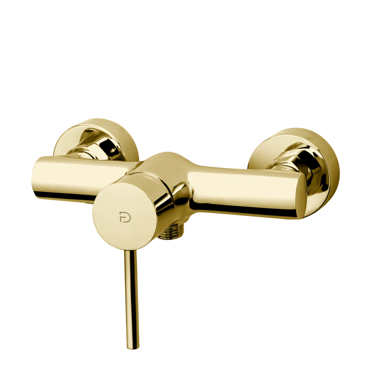 Ścienna bateria natryskowa Flusso, jak zresztą cała złota kolekcja, stanowi przykład doskonałej wręcz symbiozy minimalizmu, wysokiej jakości materiałów i precyzji wykonania. Ciepła złota barwa łagodnie otula cylindryczny korpus, okrągłe rozety, przełącznik i cieniutki uchwyt, uwydatniając ich starannie przemyślaną formę. Bateria jest nie tylko efektownym, lecz także solidnym urządzeniem. Posiada regulator ceramiczny, który zapewnia jej trwałość i niezawodność.