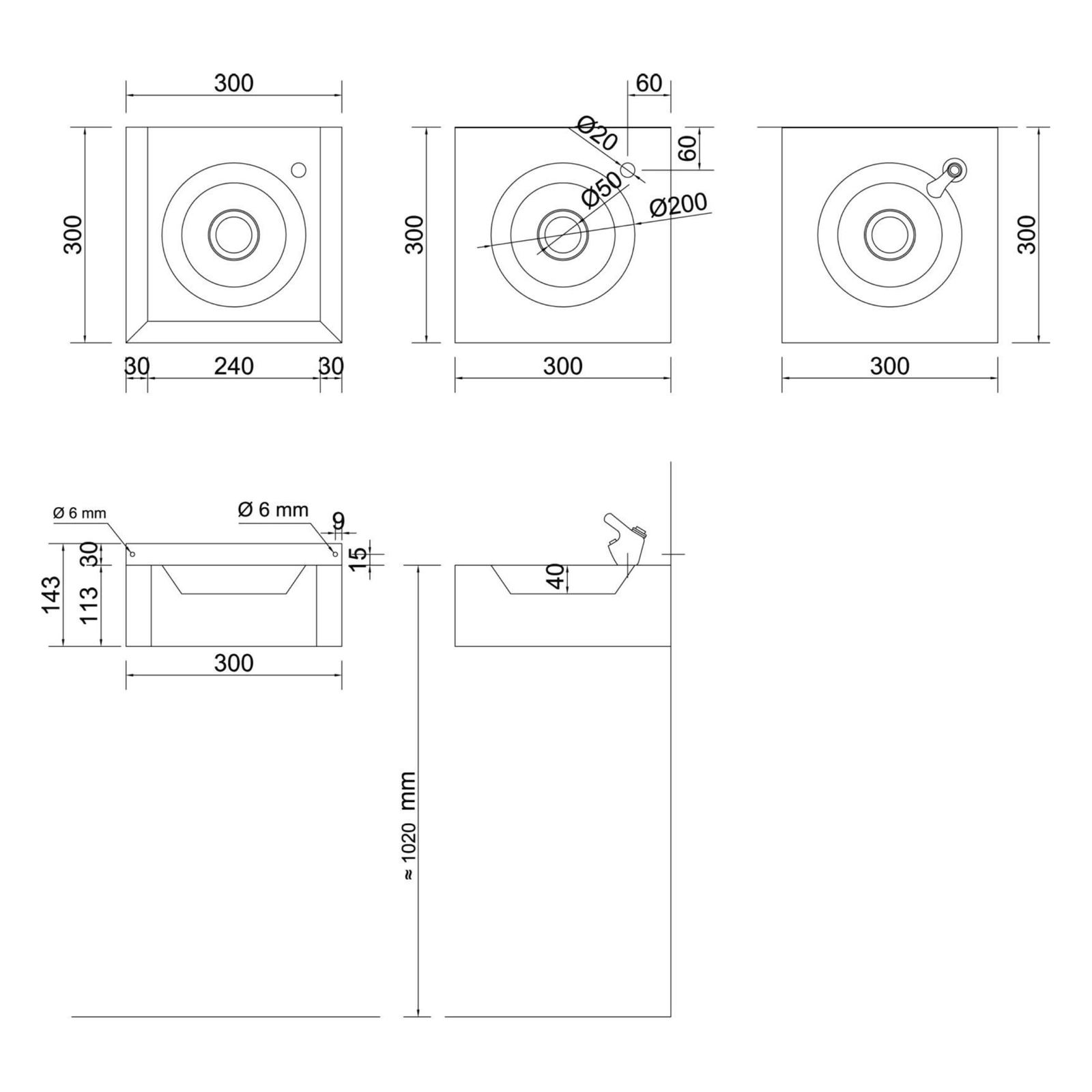 Fontanna wody pitnej 300x143x300 mm, stal nierdzewna polerowana