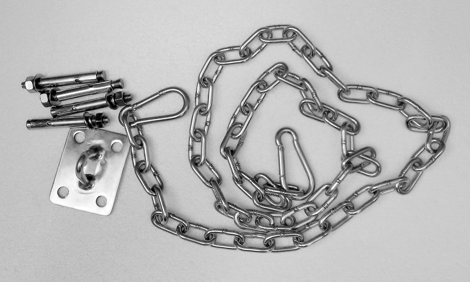 Całość jest zawieszona na wytrzymałym łańcuchu, który mocowany jest za pomocą specjalnych kotw do sufitu.