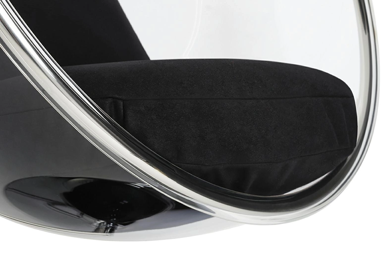 Fotel wiszący BUBBLE poduszka czarna - korpus akryl, poduszka wełna