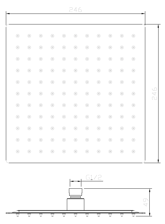 - Wymiary: 250 x 250 mm; kształt: kwadratowy; 1 funkcja deszczowa.