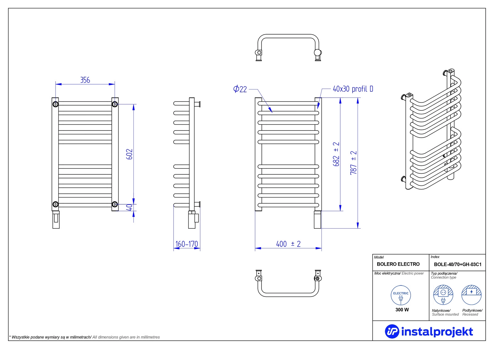 - Instal Projekt Bolero Electro Grzejnik elektryczny 40x70 cm biały połysk/white silk BOLE-40/70+GH-03C1