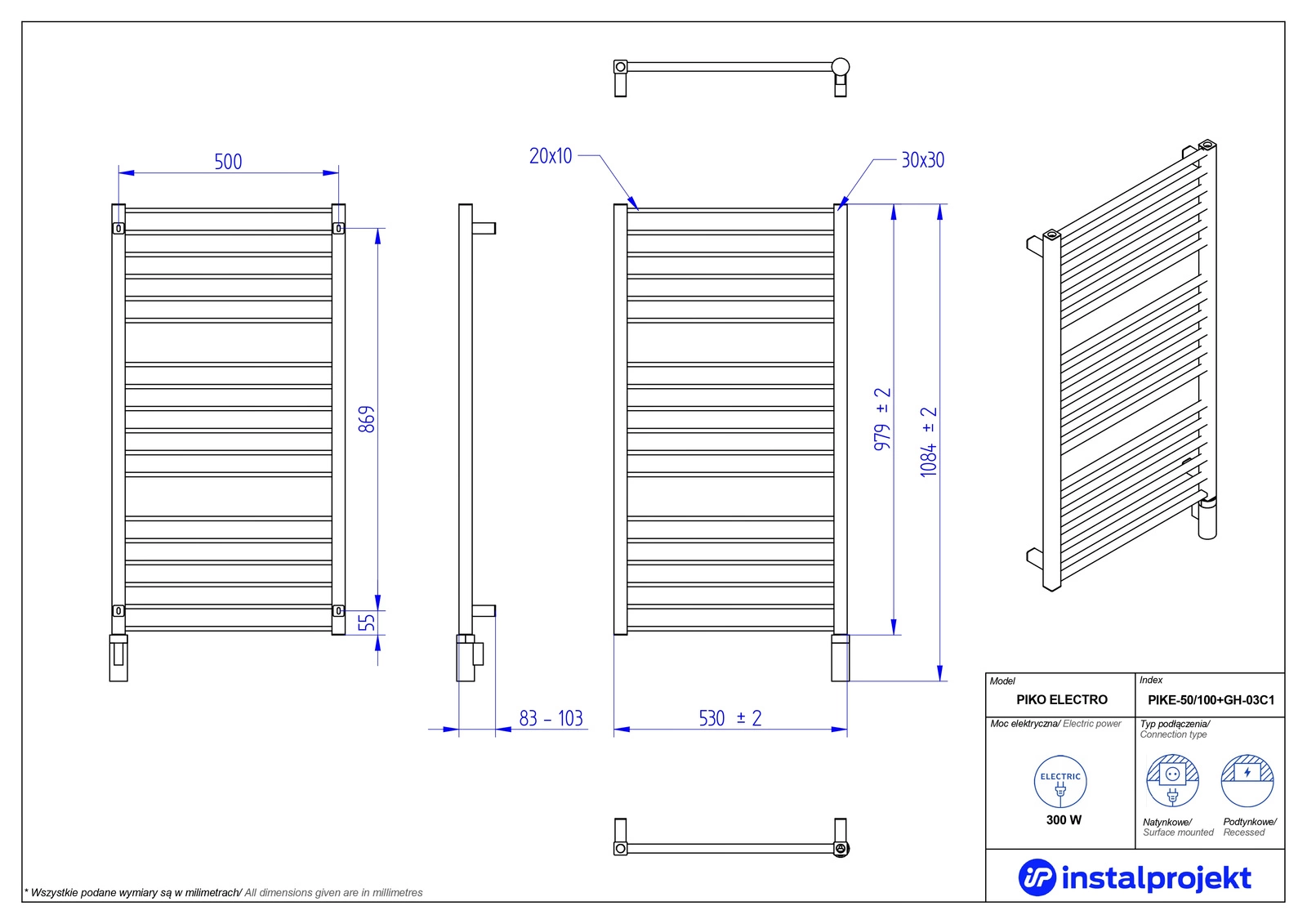 Grzejnik łazienkowy PIKO ELECTRO to wyjątkowy produkt! Spełnia oczekiwania zarówno poszukiwaczy typowo użytkowych korzyści, jak i osób zwracających dużą uwagę na wygląd urządzenia. Łączy w sobie bowiem niezawodne działanie i sprawdzoną konstrukcję odporną na uszkodzenia, a także nowoczesny design z wysoką precyzją wykończenia. Poprzez geometryczne akcenty dodaje charakteru nawet najprostszej aranżacji. Jednocześnie może zostać łatwo dopasowany do każdego wnętrza, dając efekt zachwycającej spójności z otoczeniem. W PIKO ELECTRO – tak, jak w innych grzejnikach – każdy element tworzymy z najwyższą starannością. To uwidacznia się w solidności całego produktu, również najmniejszych detali. Dzięki temu grzejnik przyciąga spojrzenia i zapada w pamięć. Dostępny jest w 23 kolorach z palety IP. Za dodatkową opłatą możemy przemalować go na dowolny kolor z palety RAL.MOŻLIWOŚĆ ZAMÓWIENIA WERSJI PODTYNKOWEJ