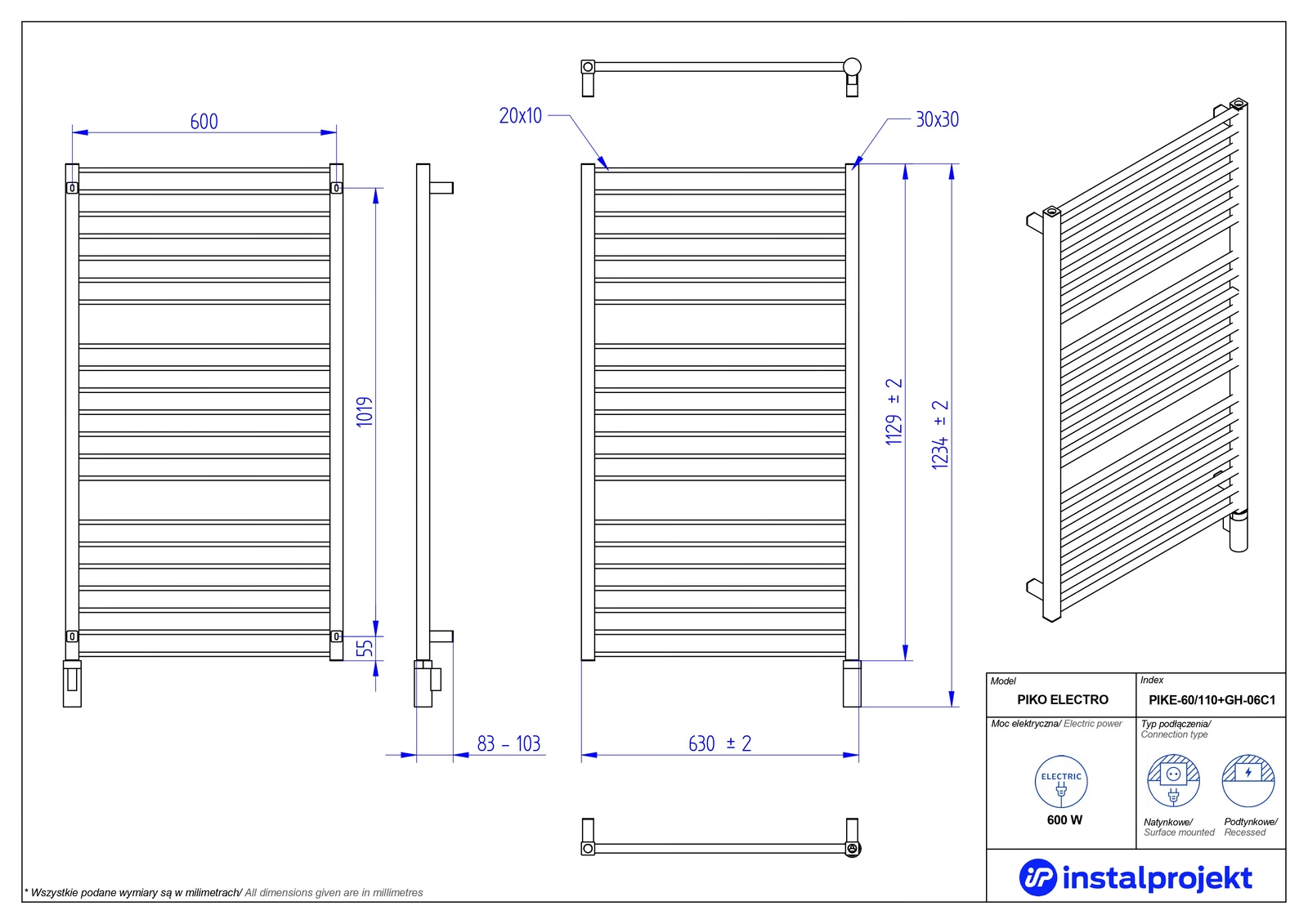 Grzejnik łazienkowy PIKO ELECTRO to wyjątkowy produkt! Spełnia oczekiwania zarówno poszukiwaczy typowo użytkowych korzyści, jak i osób zwracających dużą uwagę na wygląd urządzenia. Łączy w sobie bowiem niezawodne działanie i sprawdzoną konstrukcję odporną na uszkodzenia, a także nowoczesny design z wysoką precyzją wykończenia. Poprzez geometryczne akcenty dodaje charakteru nawet najprostszej aranżacji. Jednocześnie może zostać łatwo dopasowany do każdego wnętrza, dając efekt zachwycającej spójności z otoczeniem. W PIKO ELECTRO – tak, jak w innych grzejnikach – każdy element tworzymy z najwyższą starannością. To uwidacznia się w solidności całego produktu, również najmniejszych detali. Dzięki temu grzejnik przyciąga spojrzenia i zapada w pamięć. Dostępny jest w 23 kolorach z palety IP. Za dodatkową opłatą możemy przemalować go na dowolny kolor z palety RAL.MOŻLIWOŚĆ ZAMÓWIENIA WERSJI PODTYNKOWEJ