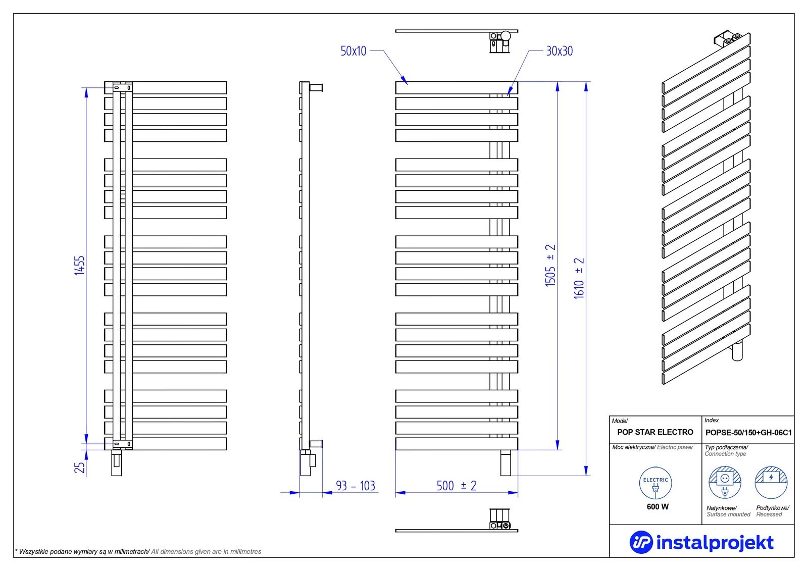 - Instal Projekt Pop Star Electro Grzejnik elektryczny 50x150 cm beżowy/white chocolate POPSE-50/150C37+GH-06C1