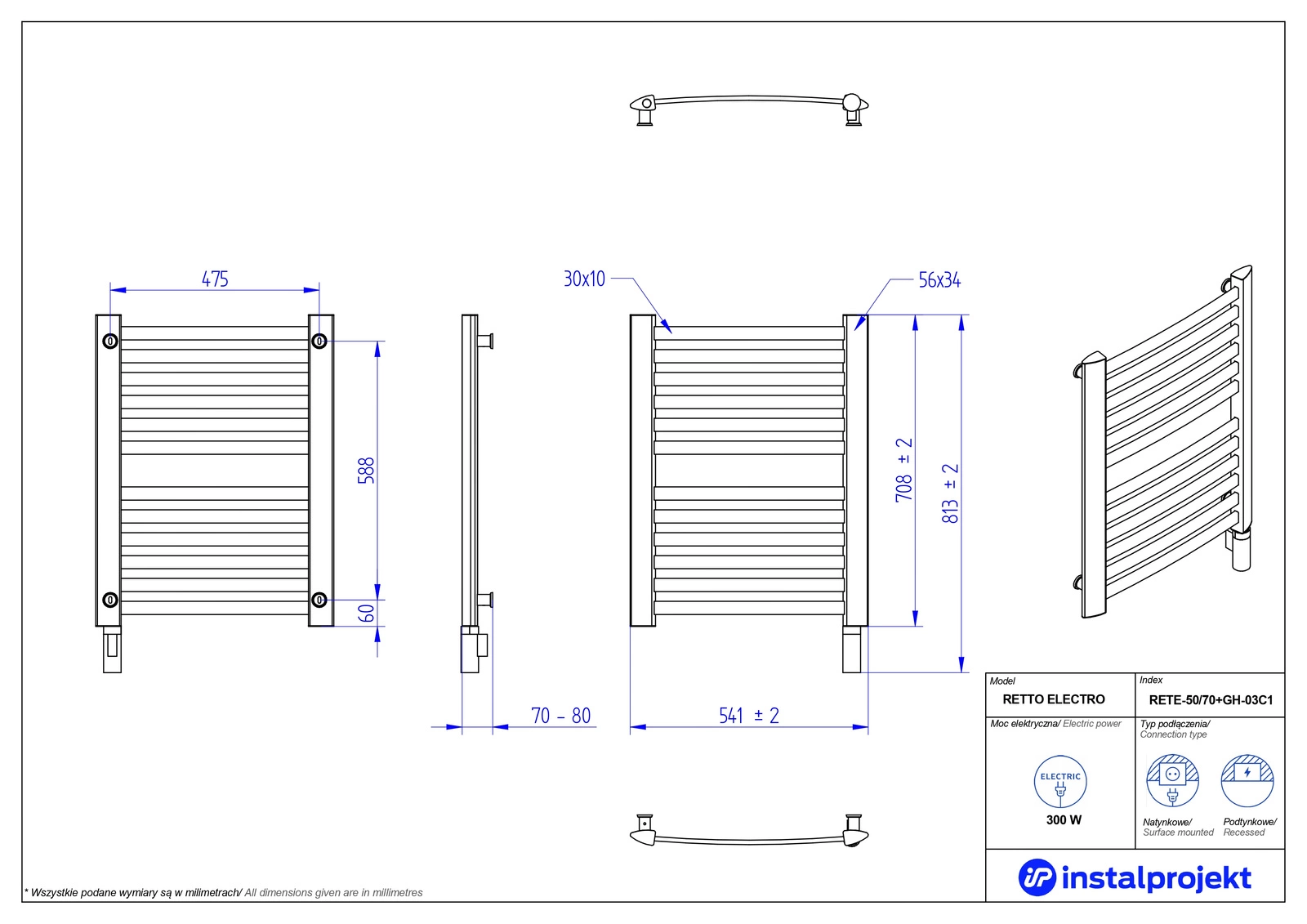 Grzejnik łazienkowy RETTO ELECTRO działa w oparciu o grzałkę elektryczną. Dzięki temu pracuje zawsze, gdy tego potrzebujesz – po podłączeniu do prądu. Za sprawą opatentowanej technologii grzewczej zużywa niewielką ilość energii wobec ciepła, które generuje. Stanowi świetne rozwiązanie zwłaszcza dla mieszkań bez instalacji c.o., z ogrzewaniem podłogowym i sufitowym, ale bez miejsca na suszenie tekstyliów. Montaż nie sprawia problemów; można przeprowadzić go samodzielnie, a w razie przeprowadzki lub remontu przenieść grzejnik w nowe miejsce.MOŻLIWOŚĆ ZAMÓWIENIA WERSJI PODTYNKOWEJ