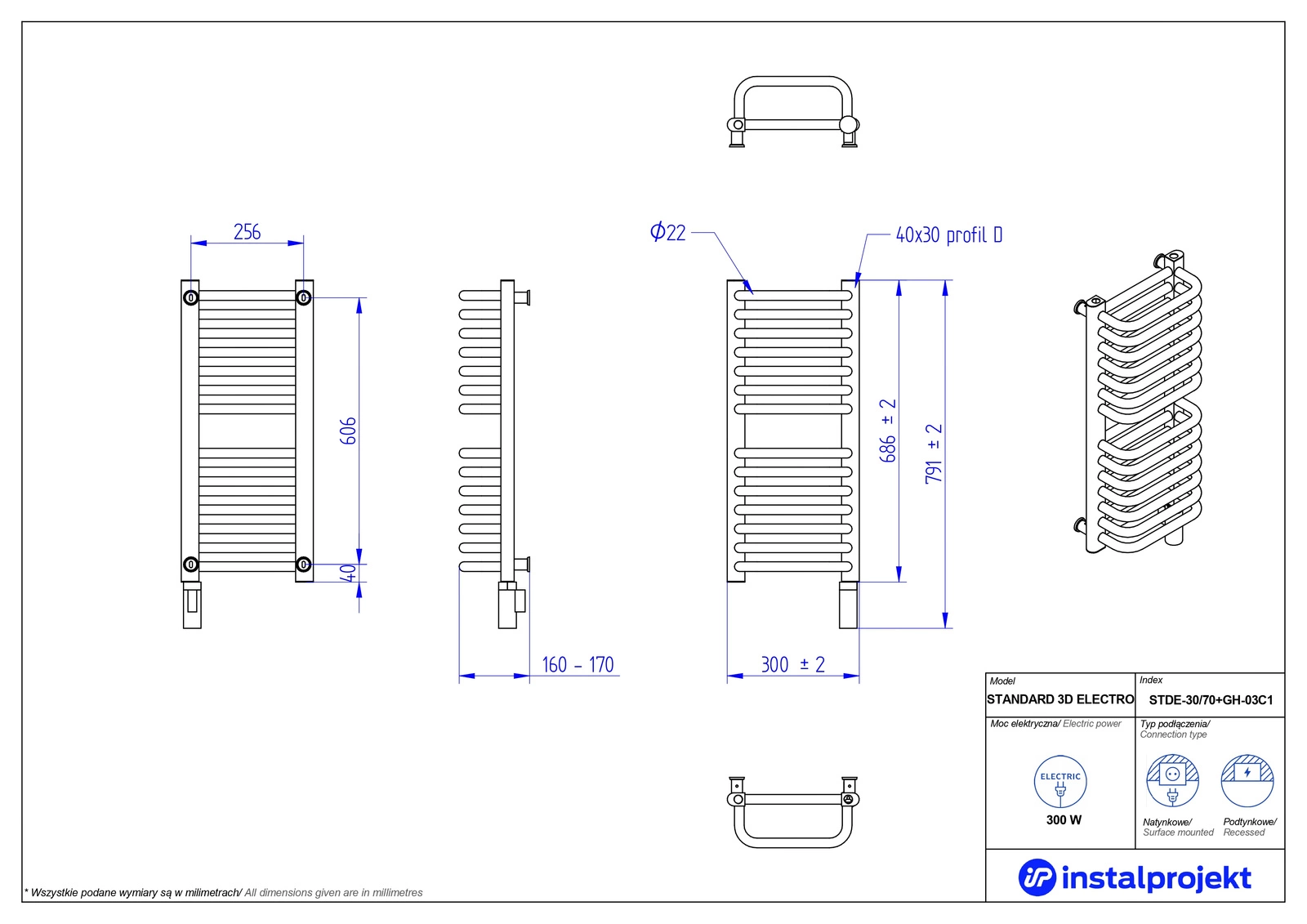 - Instal Projekt Standard 3D Electro Grzejnik elektryczny 30x70 cm biały połysk/white silk STDE-30/70+GH-03C1