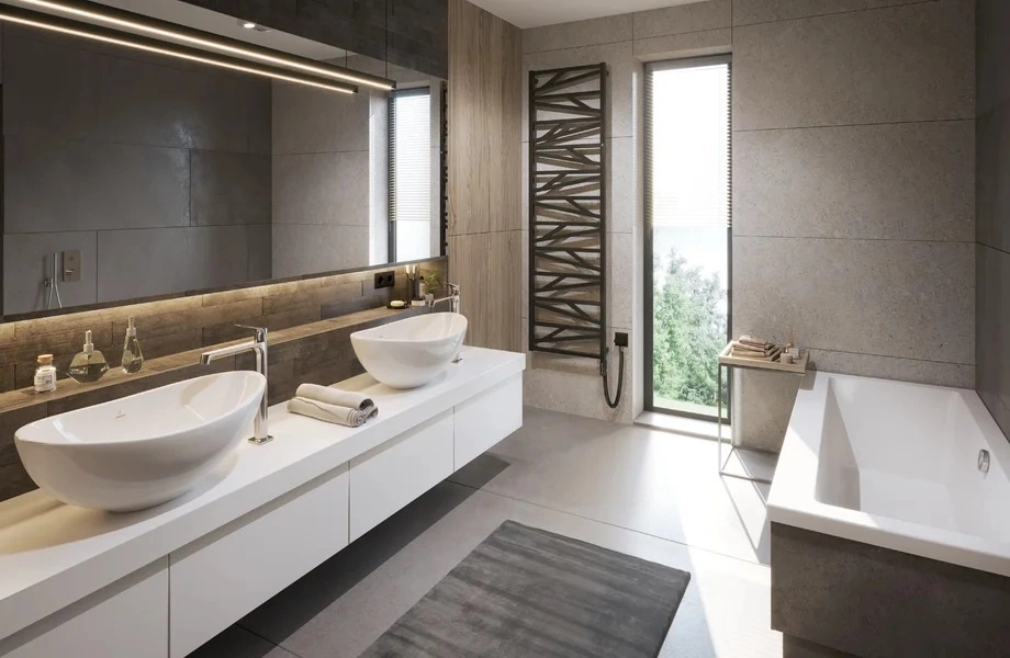 Jedno spojrzenie wystarczy, by zauważyć w grzejniku łazienkowym TRICK ELECTRO to przejaw natury. Zasługa leży po stronie specyficznego układu profili, które niczym żyłki na liściu formują subtelne i intrygujące linie. To elegancja w wyjątkowej postaci. Idealnie odnajduje się w nowoczesnych aranżacjach, gdzie króluje spójność i hołd złożony przyrodzie. Grzejnik jest dostępny w czerni i bieli, zarówno w wersji matowej, jak i z połyskiem. Możesz też wybrać kolor czarny w wariancie „struktura”, który idzie nieco w kierunku szarości lub za dodatkową opłatą zlecić przemalowanie grzejnika na jeden z 23 kolorów z palety Instal Projekt.